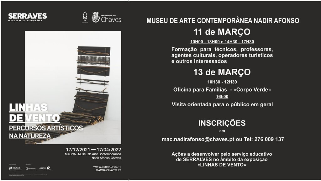 No âmbito da exposição “Linhas de vento. Percursos artísticos na natureza", patente ao público no MACNA - Museu de Arte Contemporânea Nadir Afonso e em colaboração com o Serviço Educativo da Fundação de Serralves, o município irá desenvolver três atividades a desenvolver na ótica do visitante.