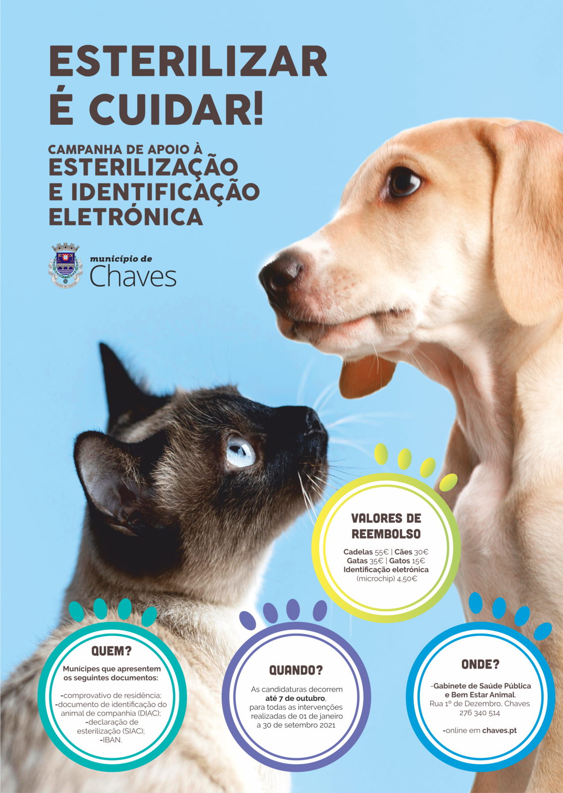 De forma a promover o bem-estar animal e a saúde pública, o Município de Chaves aderiu à campanha promovida pelo Instituto Nacional de Conservação da Natureza e das Florestas e avança com a comparticipação dos custos associados à esterilização e à identificação eletrónica de animais de companhia.