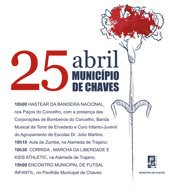 Chaves vai comemorar no próximo dia 25 de abril (terça-feira), o 43º aniversário da “Revolução dos Cravos”. Uma data histórica e emblemática para todos os portugueses, símbolo da liberdade e democracia.