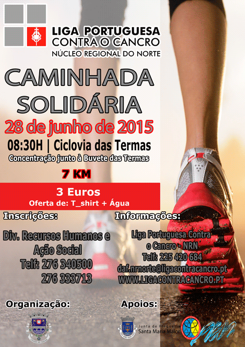 A Caminhada Solidária terá lugar no próximo dia 28 de junho, na Ciclovia da cidade de Chaves, com concentração junto à Buvete das Termas às 8h30. O custo da inscrição é 3 euros, com oferta de t-shirt e água.