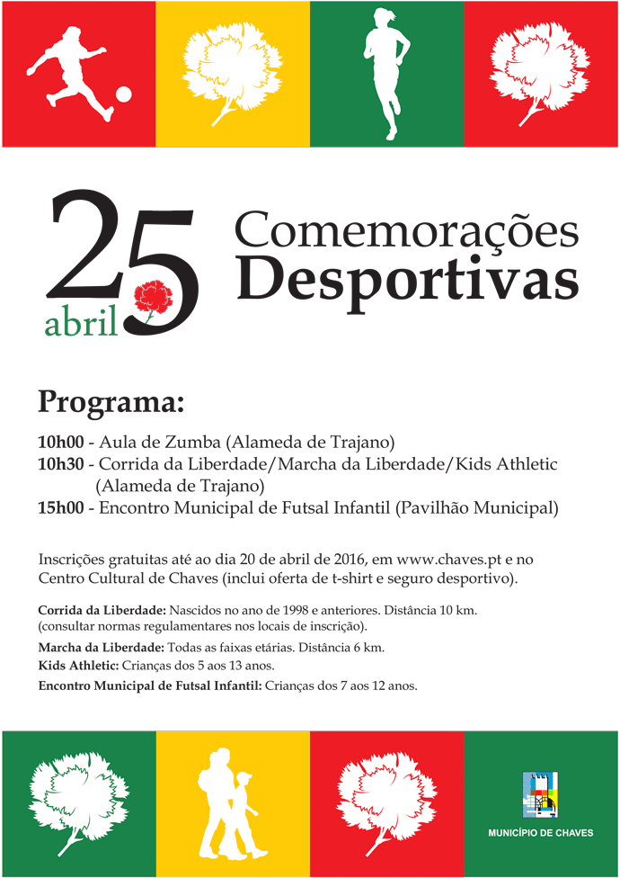 O Município convida a população a juntar-se às comemorações do dia da Liberdade e a participar nas iniciativas desportivas organizadas para este dia.