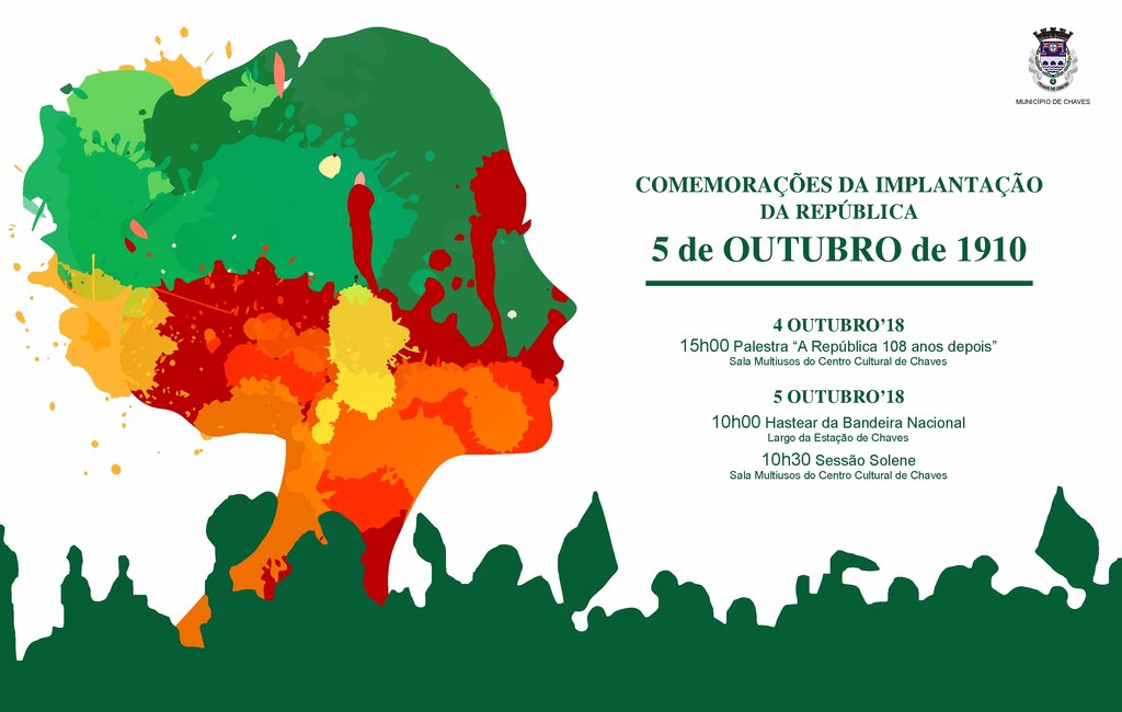 As comemorações da efeméride iniciam a 4 de outubro, com uma Palestra pelo Coronel Dias Vieira, intitulada “A República 108 anos depois”, a realizar pelas 15h00, na Sala Multiusos do Centro Cultural, envolvendo as escolas do concelho.