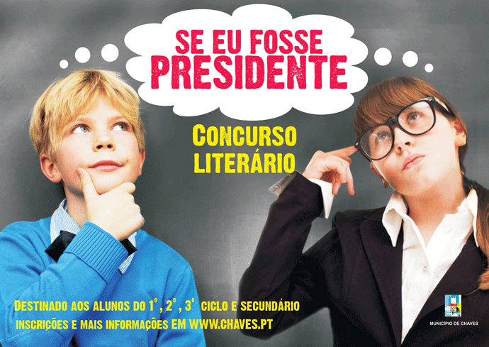 Este concurso divide-se em duas componentes, designadamente o concurso literário denominado “Se eu fosse Presidente”, no qual os estudantes são estimulados a descrever as principais ações que realizariam para melhorar o concelho. O concurso consiste na elaboração de um documento escrito, individual, com limite de 3 páginas A4 (tipo de letra arial, tamanho 11), que descreva as principais intervenções a realizar para a resolução dos problemas atuais no concelho, na situação de Presidente da Câmara.