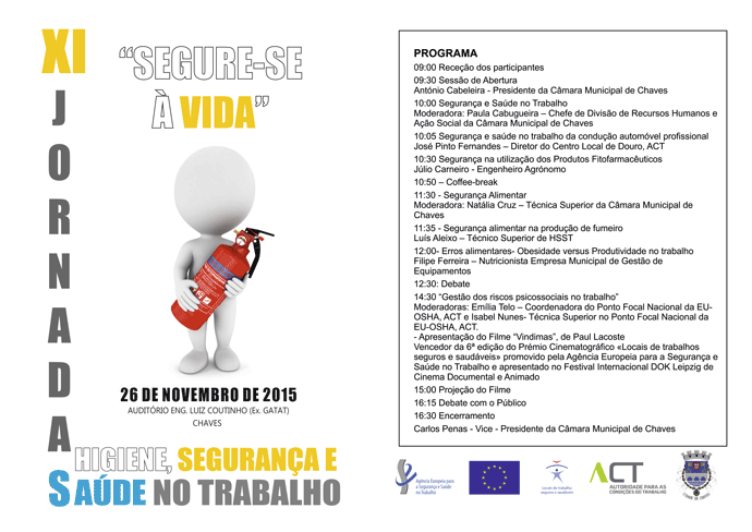 O Município de Chaves vai promover mais umas jornadas de segurança, higiene e saúde no trabalho. O Encontro, que vai já na décima primeira edição, afirma-se como um evento de oferta e intercâmbio de informação ao nível da prevenção de riscos profissionais e na melhoria das condições de trabalho.