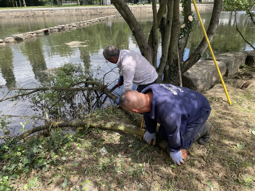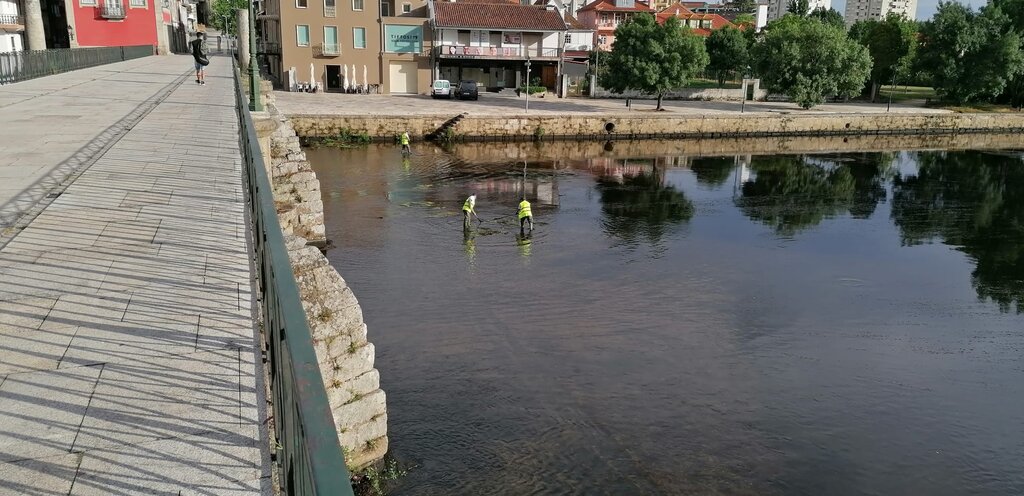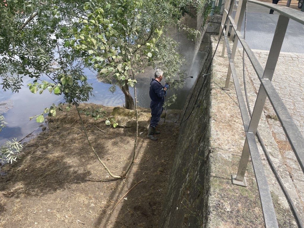 De montante para jusante, os trabalhos decorrem numa extensão de aproximadamente dois quilómetros, com a remoção e corte de árvores secas, podas de árvores e arbustos, limpeza e lavagem de muros na margem do rio, assim como o próprio corte de ervas existente nas margens, entre outros.
