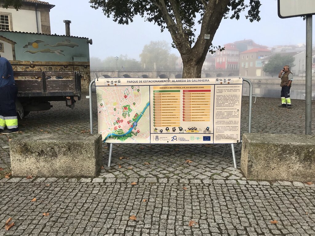 Ainda no âmbito da iniciativa, e para incentivar as deslocações pedonais e de bicicleta, foram colocados, de forma fixa, mapas informativos de distâncias pedonais em 18 paragens dos Transportes Urbanos de Chaves, no centro da cidade. Foram também colocados, de forma temporária, em cinco parques de estacionamento no centro da cidade e instalados cinco parqueamentos de bicicletas nas escolas secundárias Dr. Júlio Martins e Fernão de Magalhães, na Escola Superior de Enfermagem e no Campus da Água- Aquavalor.