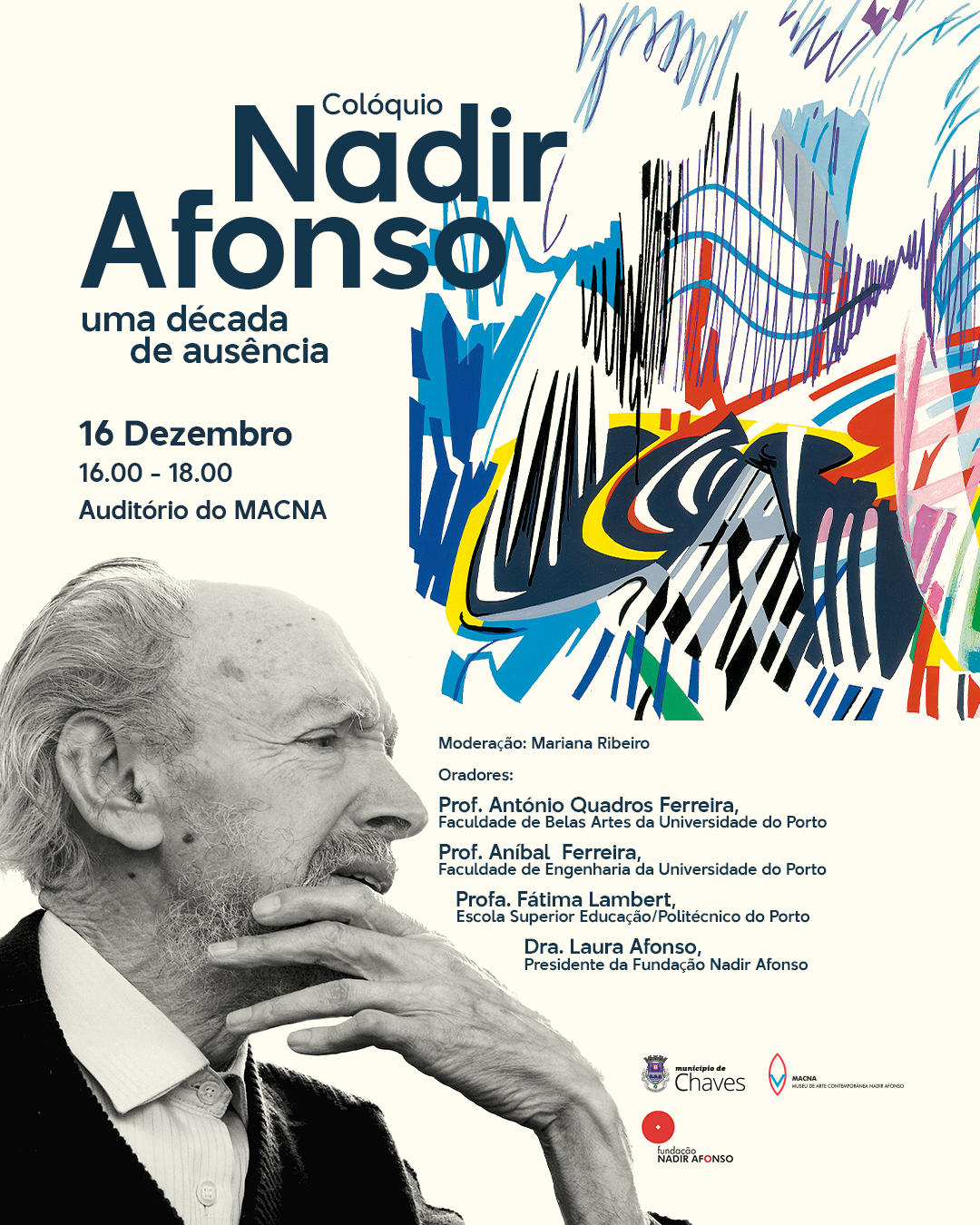 O Museu de Arte Contemporânea Nadir Afonso (MACNA) e a Fundação Nadir Afonso assinalam, no próximo sábado, dia 16 de dezembro, o 10º aniversário do falecimento do mestre flaviense, com um colóquio sobre o seu legado artístico que, apesar da ausência física continua bem presente.