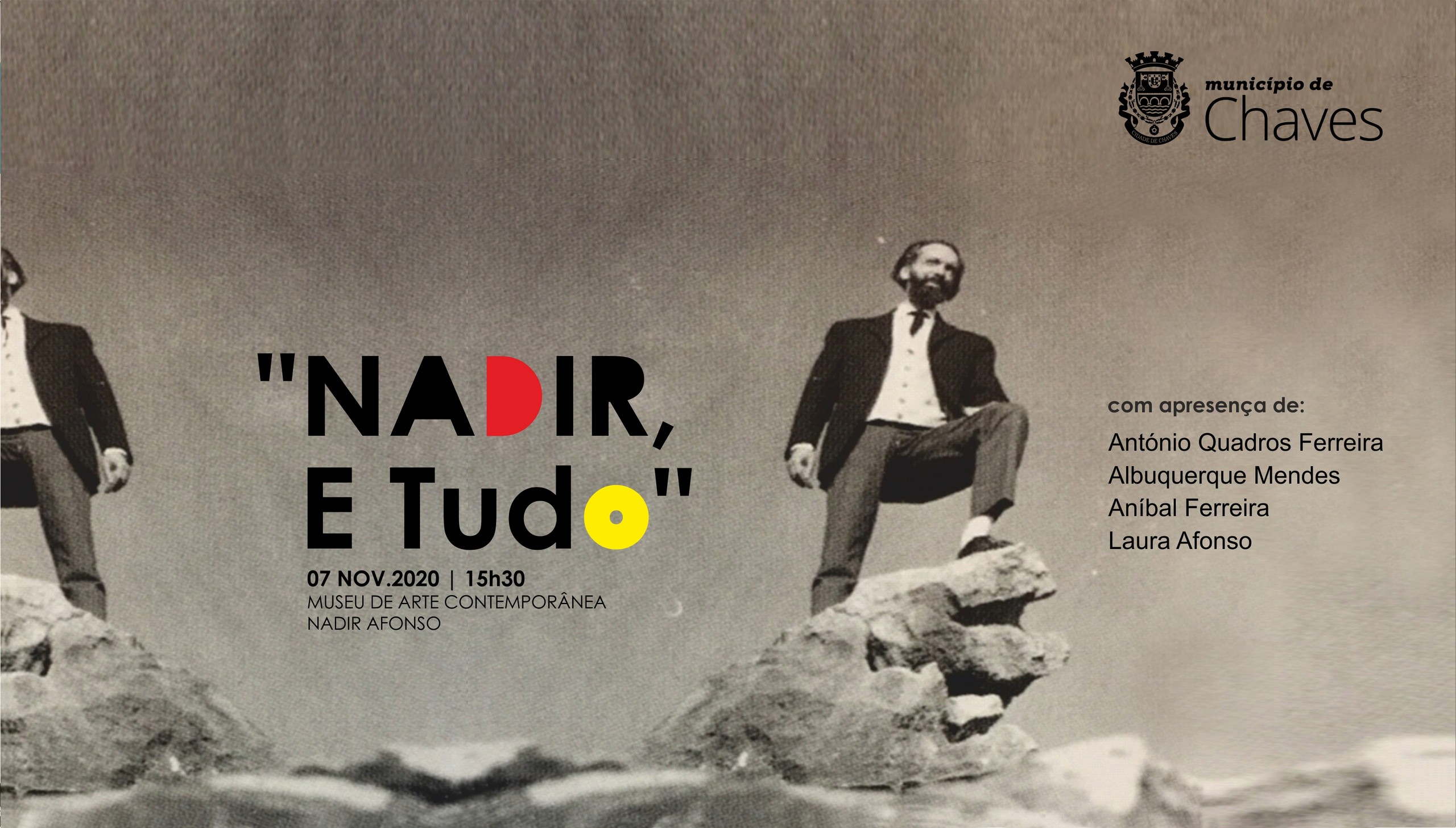 O Museu de Arte Contemporânea Nadir Afonso (MACNA) apresenta, no próximo sábado, dia 7 de novembro, com início às 15h30 e término às 18h00, o acontecimento artístico “Nadir, E Tudo”, concebido, a convite do MACNA, por António Quadros Ferreira, curador da exposição “Nadir, Subjectum”, atualmente patente no museu.