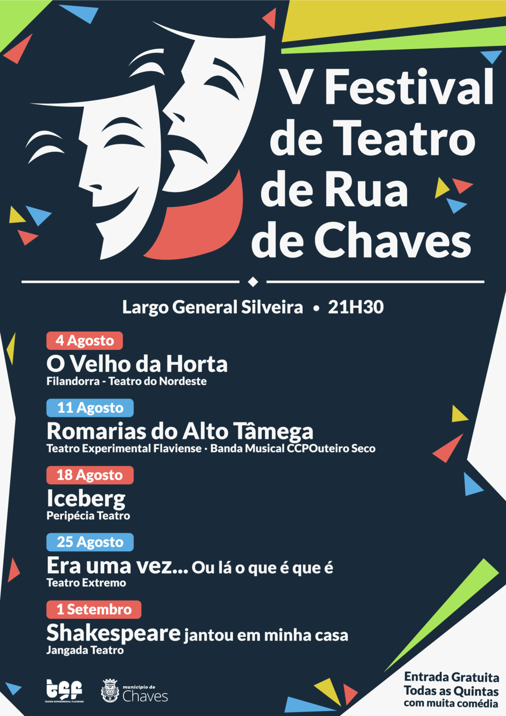 À semelhança de anos anteriores, o Município encontra-se a dar continuidade ao projeto “Teatro de Rua em Chaves”, com um programa para toda a família, que privilegia a comédia e a boa disposição, desenvolvido em parceria com o Teatro Experimental Flaviense.
