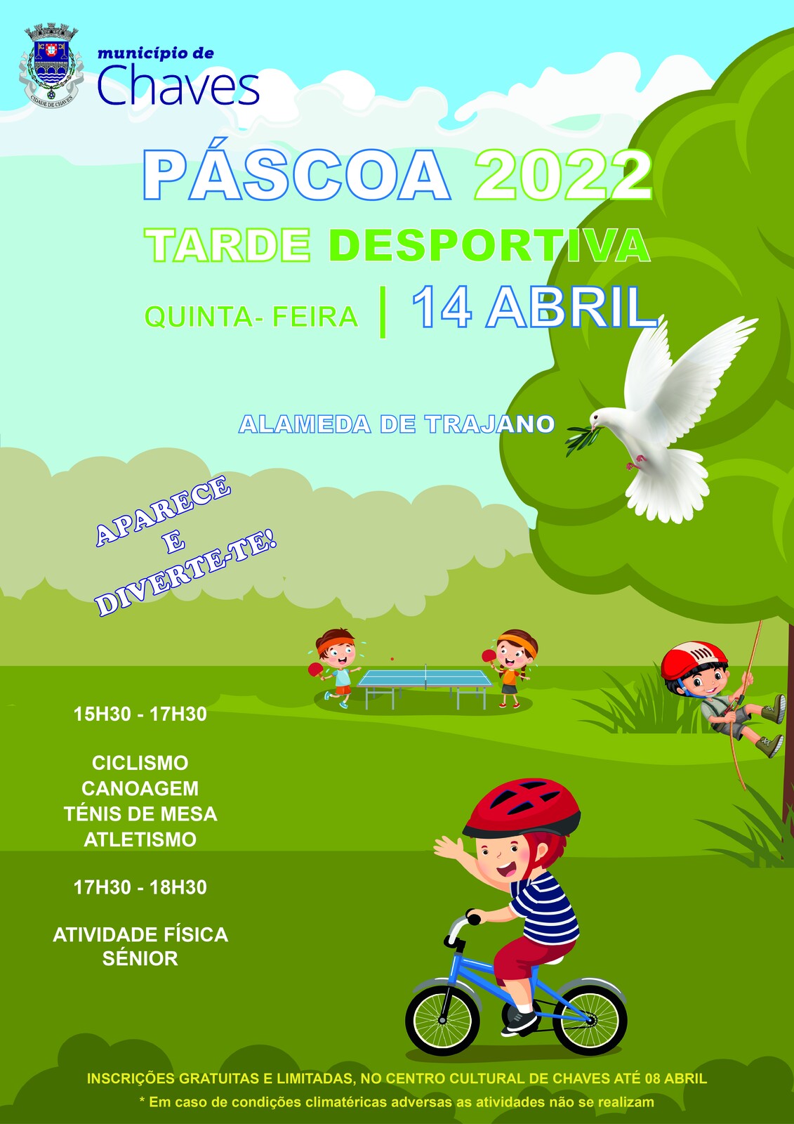 O Município de Chaves, no âmbito das modalidades desportivas promovidas pela Divisão de Juventude e Desporto, dinamiza no próximo dia 14 de abril (quinta-feira), uma tarde desportiva alusiva à Páscoa, aliando atividade física e convívio.