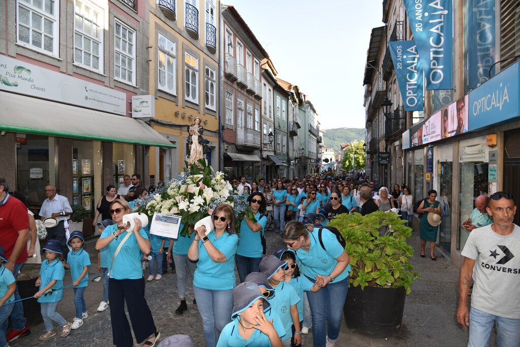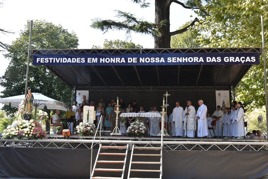 Milhares de fiéis saíram à rua, no passado domingo, para participarem nas Festividades em honra de Nossa Senhora das Graças, o maior evento religioso que se realiza anualmente no concelho de Chaves. No total, foram cerca de 50 andores dos padroeiros das freguesias do concelho, armados a preceito, que integraram a procissão.