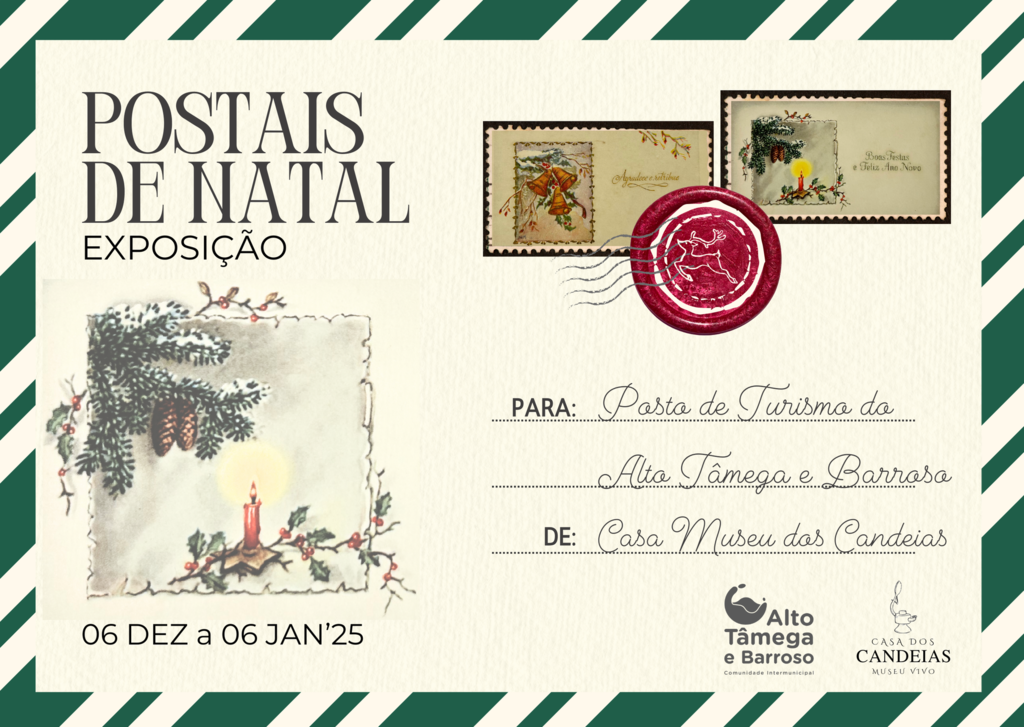 De 6 de dezembro a 6 de janeiro de 2025, o Posto de Turismo do Alto Tâmega e Barroso (PTAT) terá patente ao público a exposição de “Postais de Natal” da Casa Museu dos Candeias.