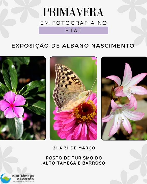 À semelhança de outras iniciativas e para assinalar a chegada da Primavera, o Posto de Turismo do Alto Tâmega e Barroso (PTAT) acolhe, de 21 a 31 de março, a exposição “Primavera em fotografia no PTAT”, do flaviense Albano Nascimento.