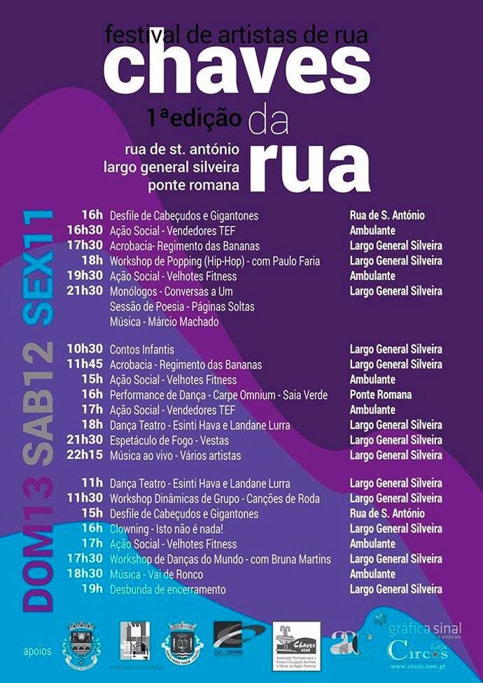 O programa contará, ao longo dos três dias, com a participação de um vasto leque de reconhecidos artistas e com variadas performances e iniciativas que animarão as principais ruas da cidade de Chaves.