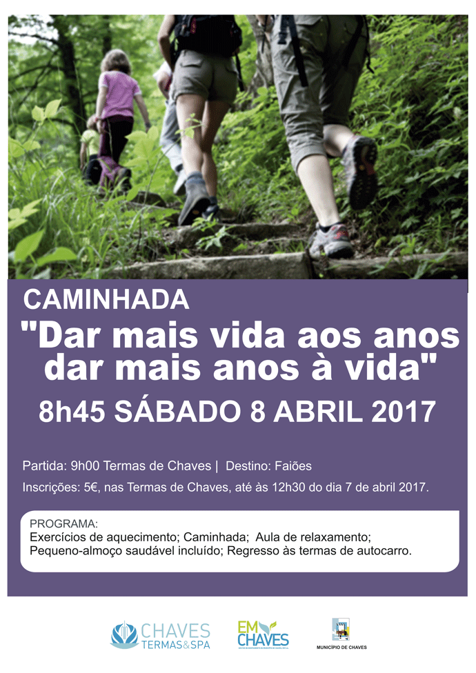Com a chegada da primavera, as Termas de Chaves vão dar início às suas habituais caminhadas, sob o mote “Dar mais vida aos anos, dar aos anos mais vida”. A primeira caminhada deste ano irá decorrer no próximo dia 8 de abril (sábado), até à aldeia de Faiões.