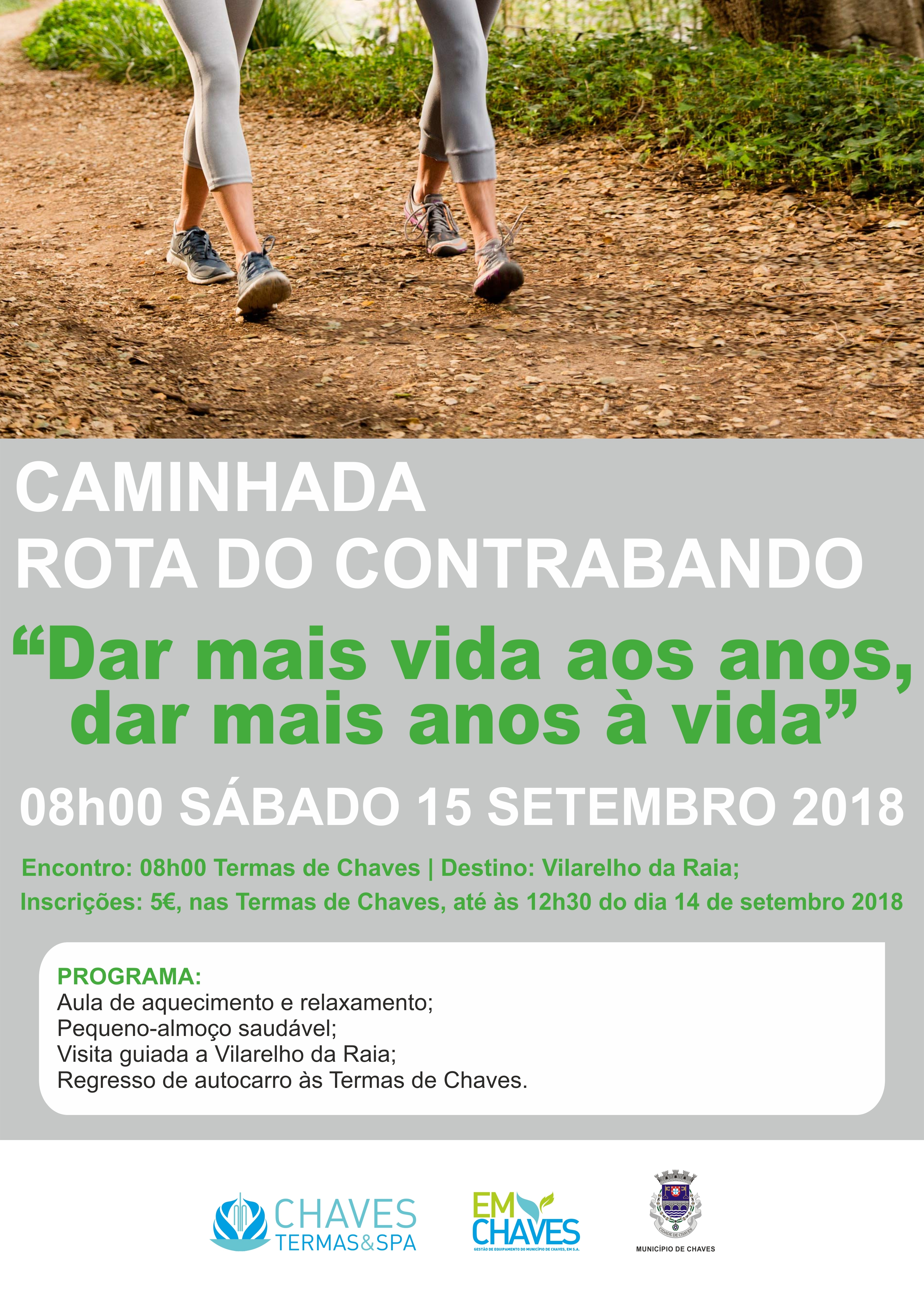 As Termas de Chaves vão promover, no próximo dia 15 de setembro (sábado), uma caminhada inserida na “Rota Raiana do Contrabando”. Sob o mote “Dar mais vida aos anos, dar aos anos mais vida” esta iniciativa pretende estimular hábitos de vida saudável junto da população, promovendo também o património natural do concelho.