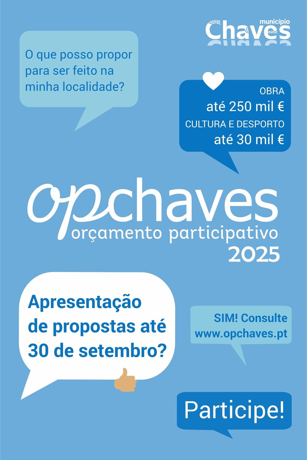 Podem participar no OP de Chaves todos os cidadãos recenseados no município. Mais informações AQUI. Participe!