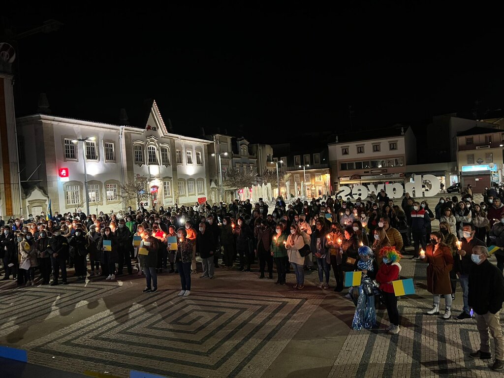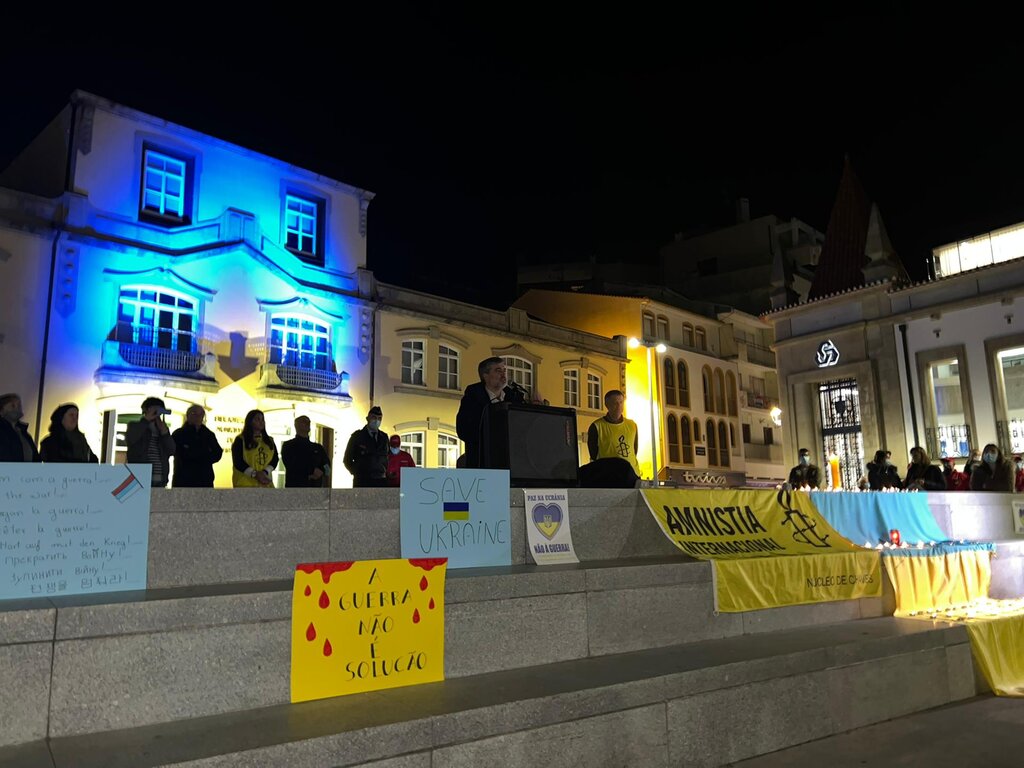 Com as cores da bandeira Ucraniana de fundo, a comunidade flaviense reuniu-se ontem, dia 28 de fevereiro, numa Vigília pelos Direitos Humanos na Ucrânia, uma ação de sensibilização promovida pela Amnistia Internacional – Grupo de Chaves, em articulação com o município, no Largo General Silveira.