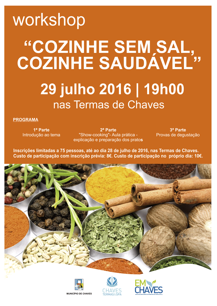 No final, todos os participantes receberão um livro digital de receitas “Cozinhe sem sal, Cozinhe saudável”. Os interessados poderão inscrever-se nas Termas de Chaves até ao dia anterior, com um custo de 8 euros. No próprio dia o custo por cada inscrição será de 10 euros.