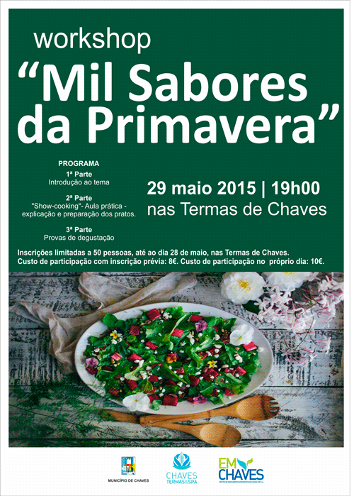 A primavera chegou e com ela trouxe uma variedade infinita de alimentos. Misturar aromas e sabores, através da utilização de alimentos saudáveis, é a proposta do workshop “Mil Sabores da Primavera”, uma iniciativa organizada pelas Termas de Chaves, que terá lugar na próxima sexta-feira, dia 29 de maio, no balneário termal.