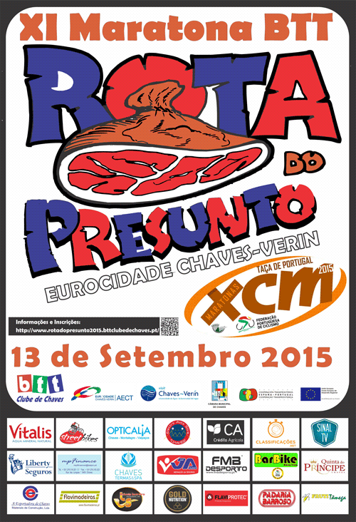 A XI Maratona BTT Rota do Presunto 2015 é uma organização conjunta do BTT Clube de Chaves e da Câmara Municipal de Chaves, com o apoio do AECT - Agrupamento de Cooperação Territorial Eurocidade Chaves-Verín, que trará por terras flavienses alguns dos melhores praticantes da modalidade a nível nacional.