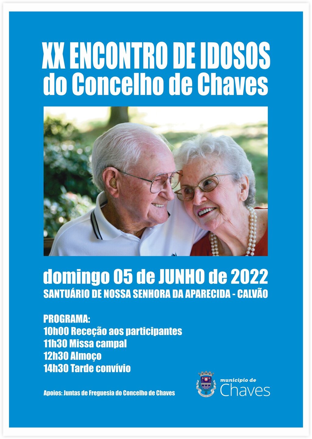 O Município, após um interregno devido à pandemia, vai realizar o XX Encontro de Idosos que decorrerá no Santuário de Nossa Senhora da Aparecida, em Calvão, no próximo dia 05 de junho (domingo).