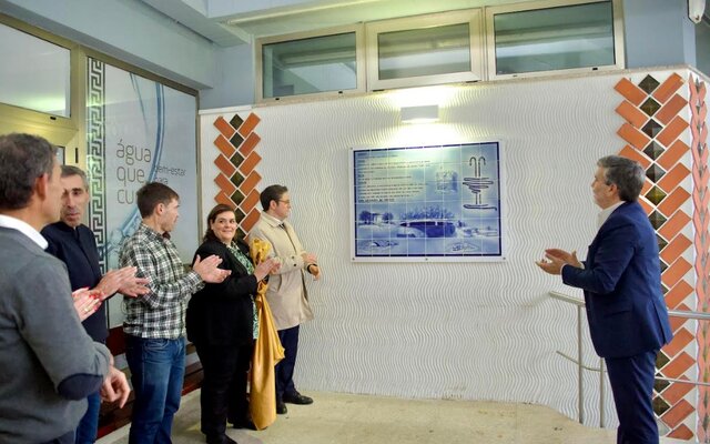 Um painel de azulejos pintado à mão, com ilustrações relativas a Chaves e oferecido ...
